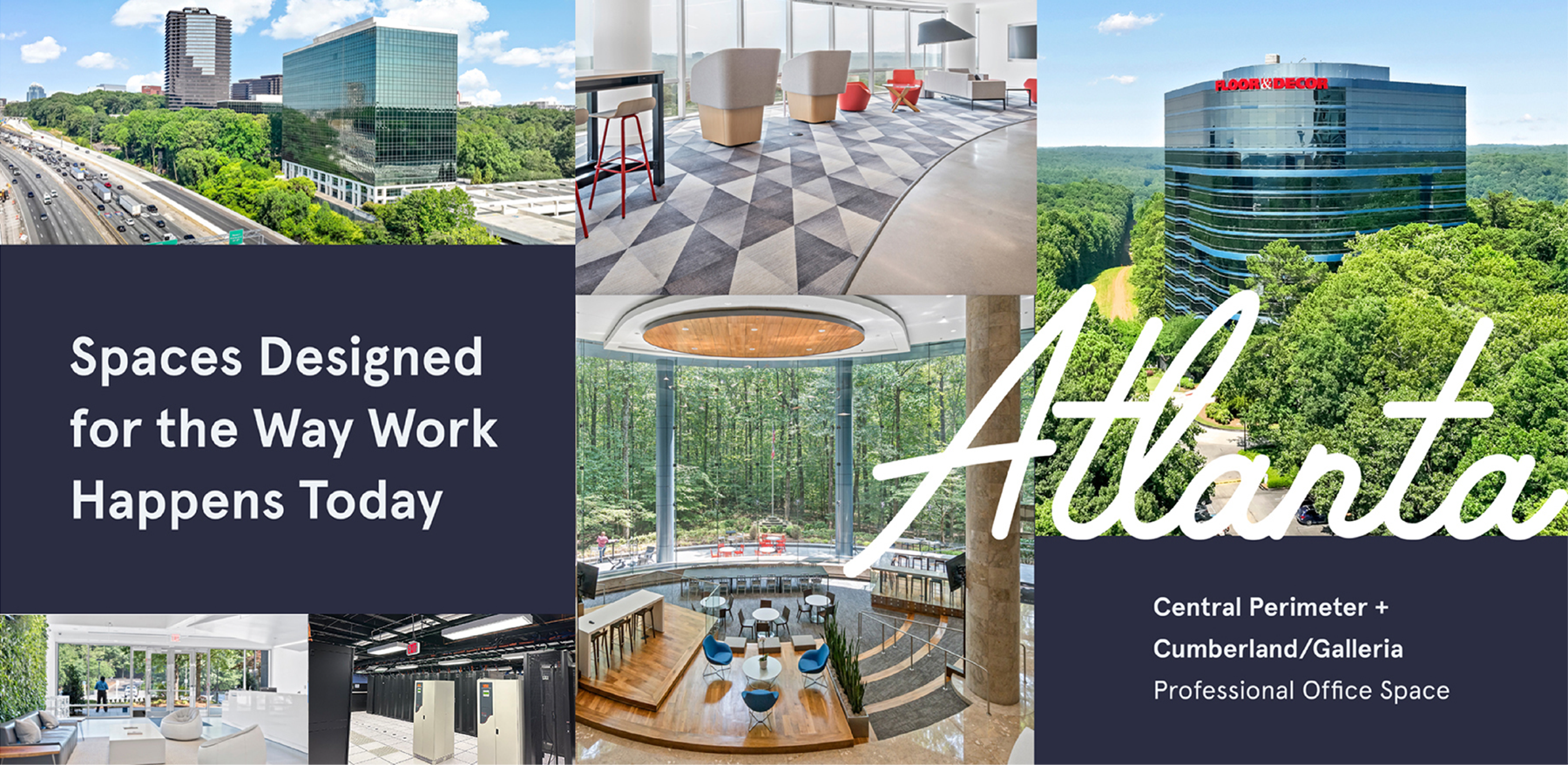 Our portfolio features 1.4 million square feet of premier suburban office space across greater Atlanta, spanning six strategically located buildings within highly sought-after submarkets, including Central Perimeter and Cumberland/Galleria. Not only are our properties centrally located with unmatched highway access making it a quick ride to and from the office, but each is also thoughtfully positioned within vibrant “20-minute neighborhoods”.
