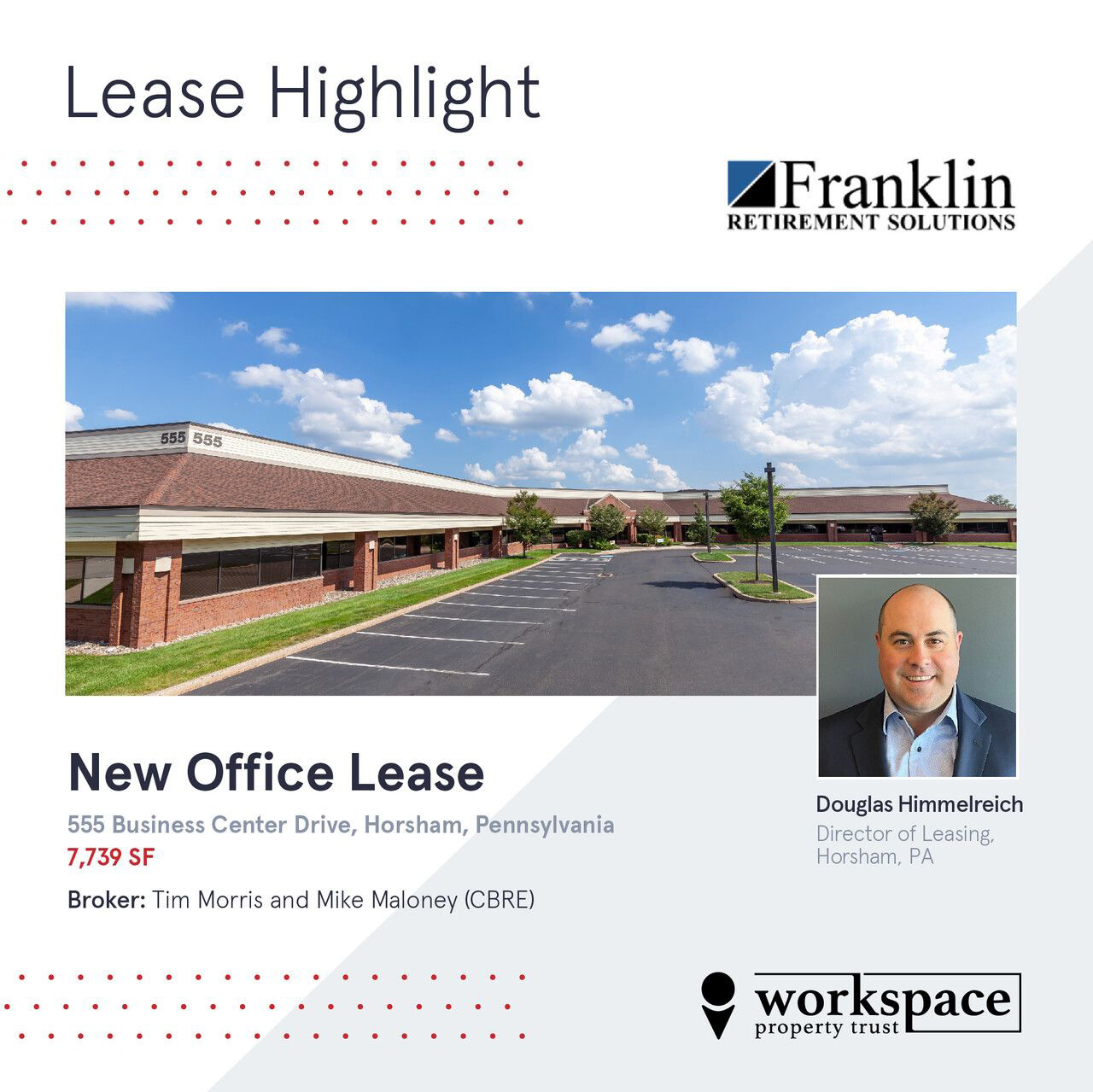 Welcome Franklin Retirement Solutions, our new tenant of 7,739 sq. ft. at 555 Business Center Dr in the PA lifestyle campus!