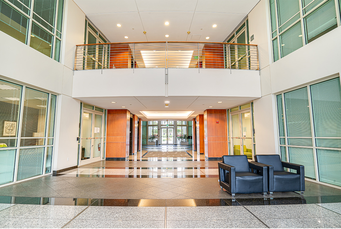 The campus includes an inviting outdoor lounge area with covered seating and shaded picnic tables, providing an ideal space for relaxation and informal meetings. The property also offers a generous parking ratio – ensuring ample parking for employees and visitors. Conveniently located near shopping centers, hotels, restaurants, banks, daycare facilities, and fitness centers, it supports a balanced and productive work-life experience.