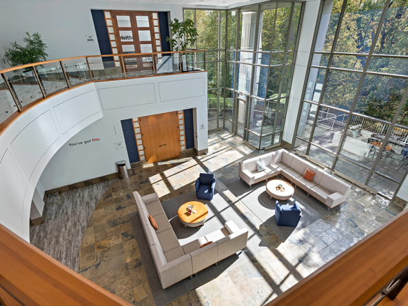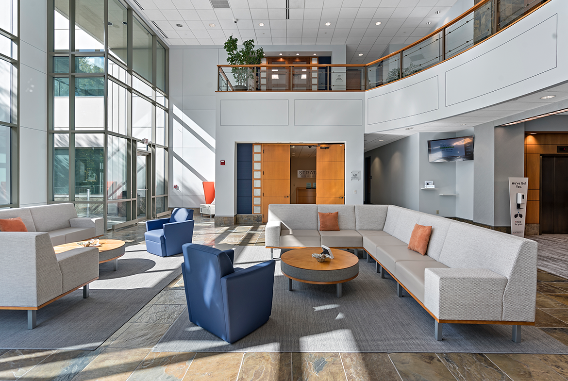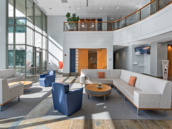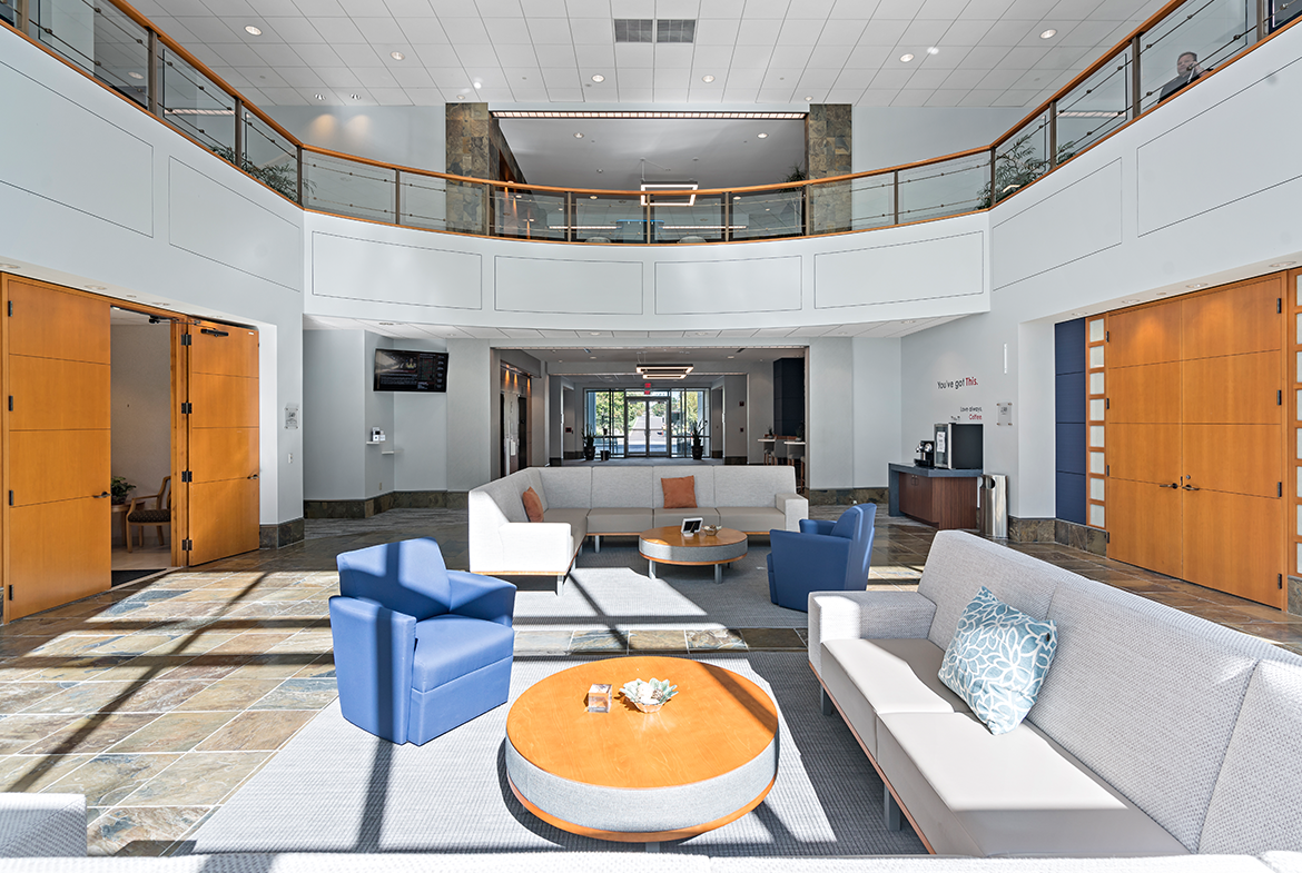 5 Walnut Grove Drive is a modern, three-story, multi-tenant office building featuring a dramatic atrium lobby with high-end finishes, prominent double door tenant entrances, an abundance of natural light from high ceilings and ample windows, and an outdoor terrace with iron furniture and umbrellas in a natural setting. 5 Walnut Grove Drive is in the Pennsylvania Lifestyle Campus and has convenient access to (11) SEPTA stops, easy access to (2) PA Turnpike entrances and routes 611 & 63.