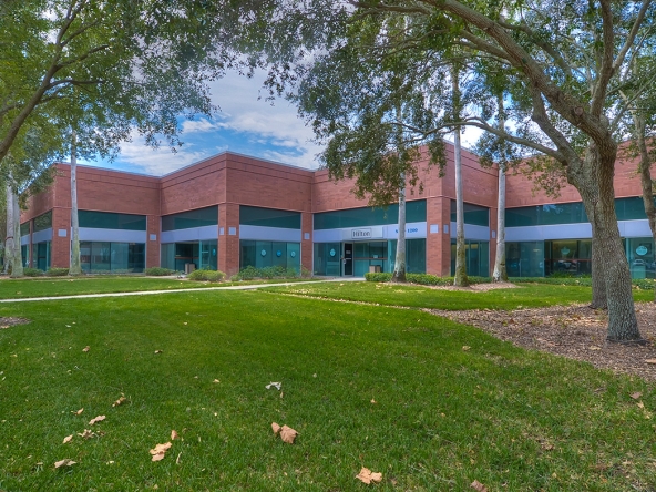Woodland Corporate Center has plenty of mature trees, several ponds with fountains and ample sidewalk space to walk throughout the park.