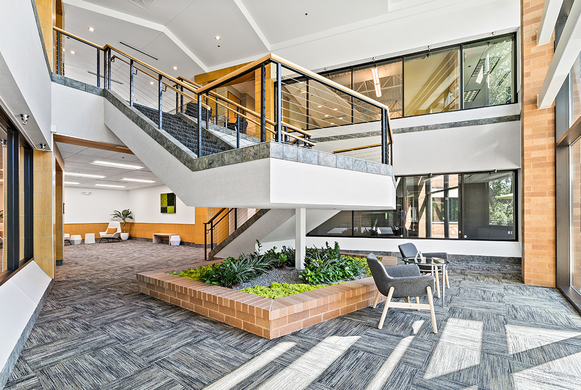 7800 Equitable Drive is ideal for companies in need of warehouse function, within a traditional office setting with high ceilings, large windows, two-sides of glass and fireplace. Nestled in the sought-after southwest suburb of Eden Prairie, the building offers a welcoming lower level sitting area, an outdoor patio, ample parking options with both surface and garage spaces.