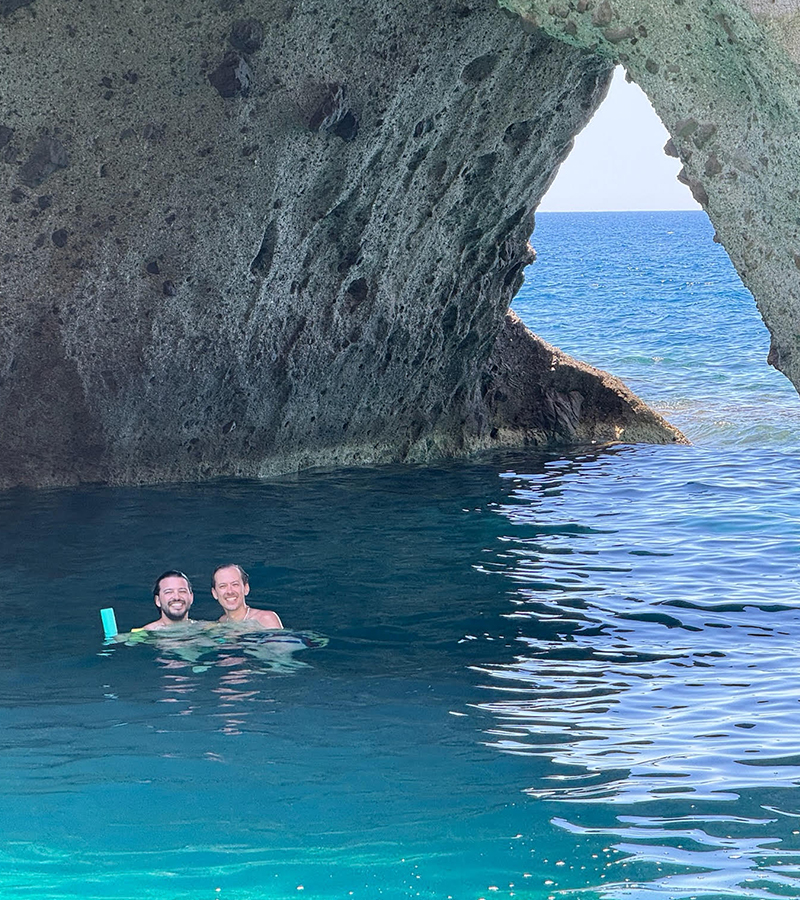 By far the best decision we made in Greece was signing up for a day tour with Michael Zeppos Cruises out of Paros. There are innumerable companies that will take tourists out to sea for a day of snorkeling and beach hopping, but Michael Zeppos was in a class of its own. We spent 7 hours cruising around Paros and Antiparos on a traditional wooden kaĆki (fishing boat), eating a delicious lunch prepared fresh by the amazing crew, enjoying all-you-can-drink house wine and beer, and swimming and snorkeling around some of the most beautiful locations the islands have to offer, many of which were only accessible by boat!